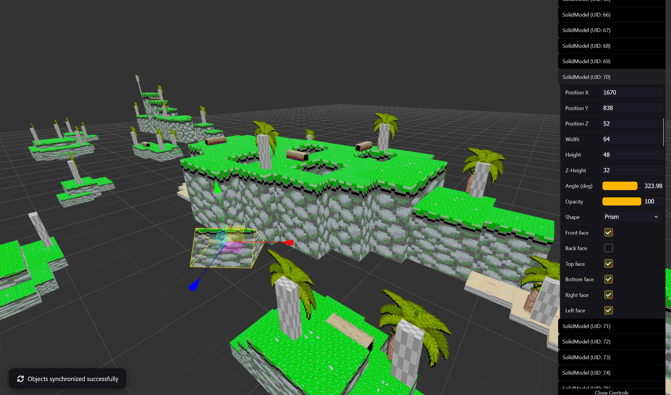- Live property editing for 3D Shapes: scale, rotation, position, texture, shape-type, face settings, and opacity.